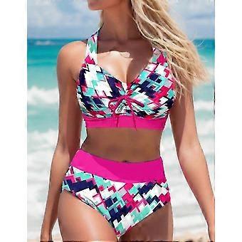 Sexy Striped Curve Print Halter Tankini Bikini for Women - Two-Piece Beach Swimwear in Sizes S-5XL for Stylish Summer Fun