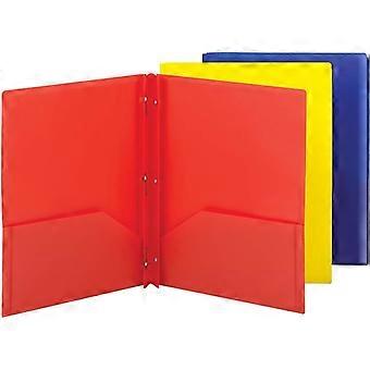 Poly Two-Pocket Folder, Three-Hole Punch Prong Fasteners, Letter Size, Assorted Colors, 3 per Pack