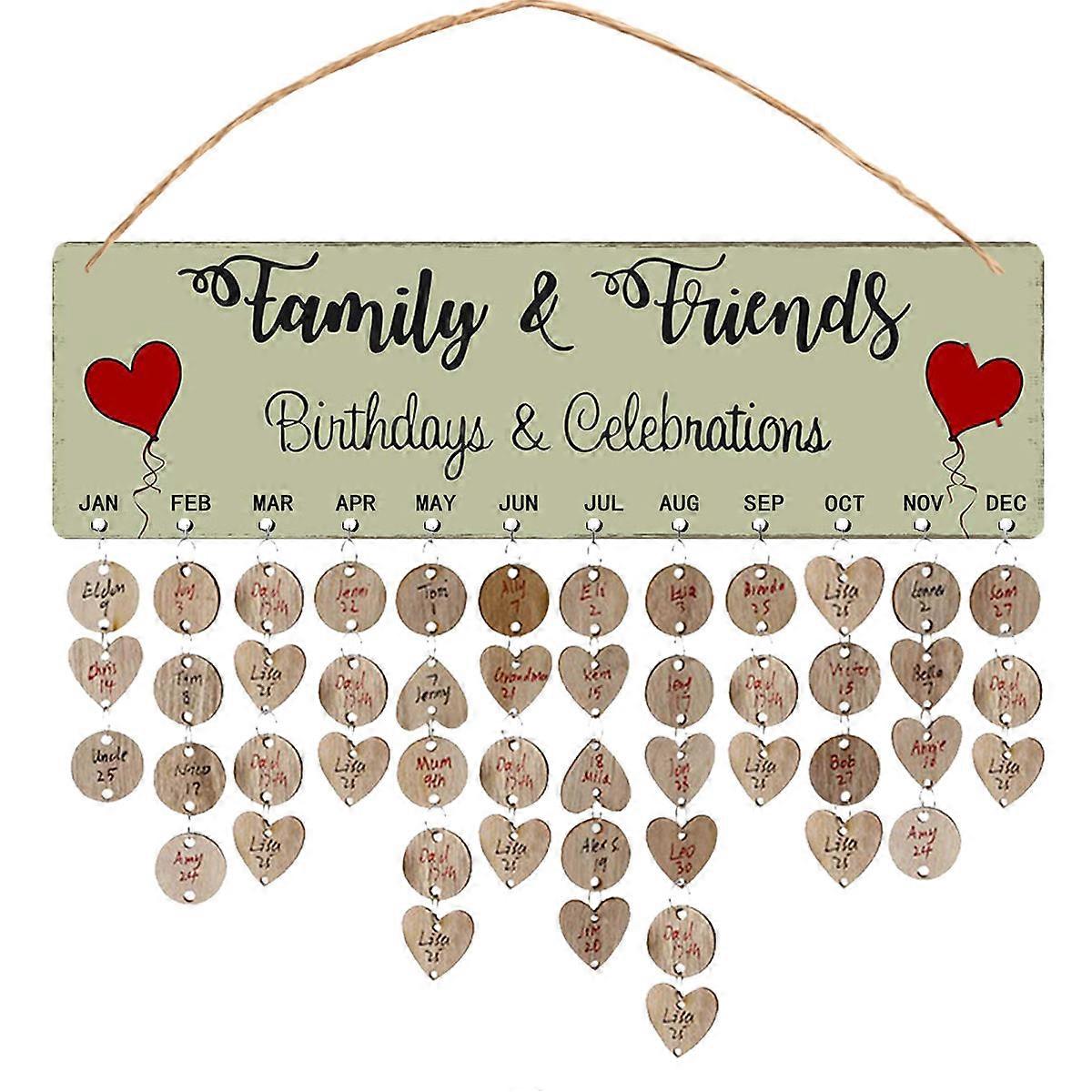 wooden birthday celebration planner board. With heart and round shape wooden cards, you can write down name and date on the wooden cards and then it, should never ever forget. Perfect for friends, family etc. Features - ColorLight Yellow - Material: . - Size: 12 x 0.5 - This package includes a board +50 round cards+50 hearts cards. - DIY , you can arbitrarily string out what you like. - It not only acts a notice board or plan board, but also a beautiful home ornament. - Easy for you to assemble, include a rope. - You can write relatives’ and friends’ name and birthday date on a small piece of wood. - Perfect birthday, wedding, anniversary, valentine’s day, mother’s day, etc. - Warm Tip: Dear buyer, due to lighting effect, monitor’s brightness, manual measurement, etc., there could be some slight differences in the color and size between the photo and the actual item. Sincerely hope that you can understand! Thank you! Package list: 1 x Hanging Pendant set