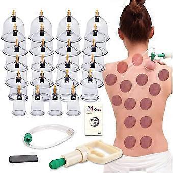 مجموعات العلاج بالحجامة ، 24 كوبا مجموعة الحجامة مع أكواب شفط فراغ مضخة للجسم السيلوليت الحجامة تدليك آلام الظهر