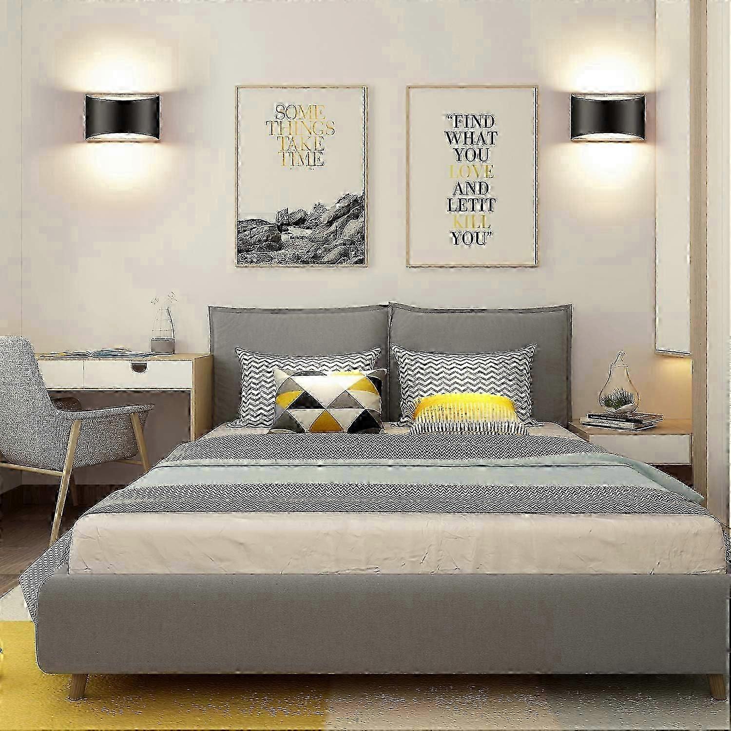 Indoor Dimmable Wall Sconces Sets of 2, Modern Black Led Up Down Wall Lamp, 12W Indoor Hallway Wall Light Fixtures for Living Room, Stair, Bedroom, Wa