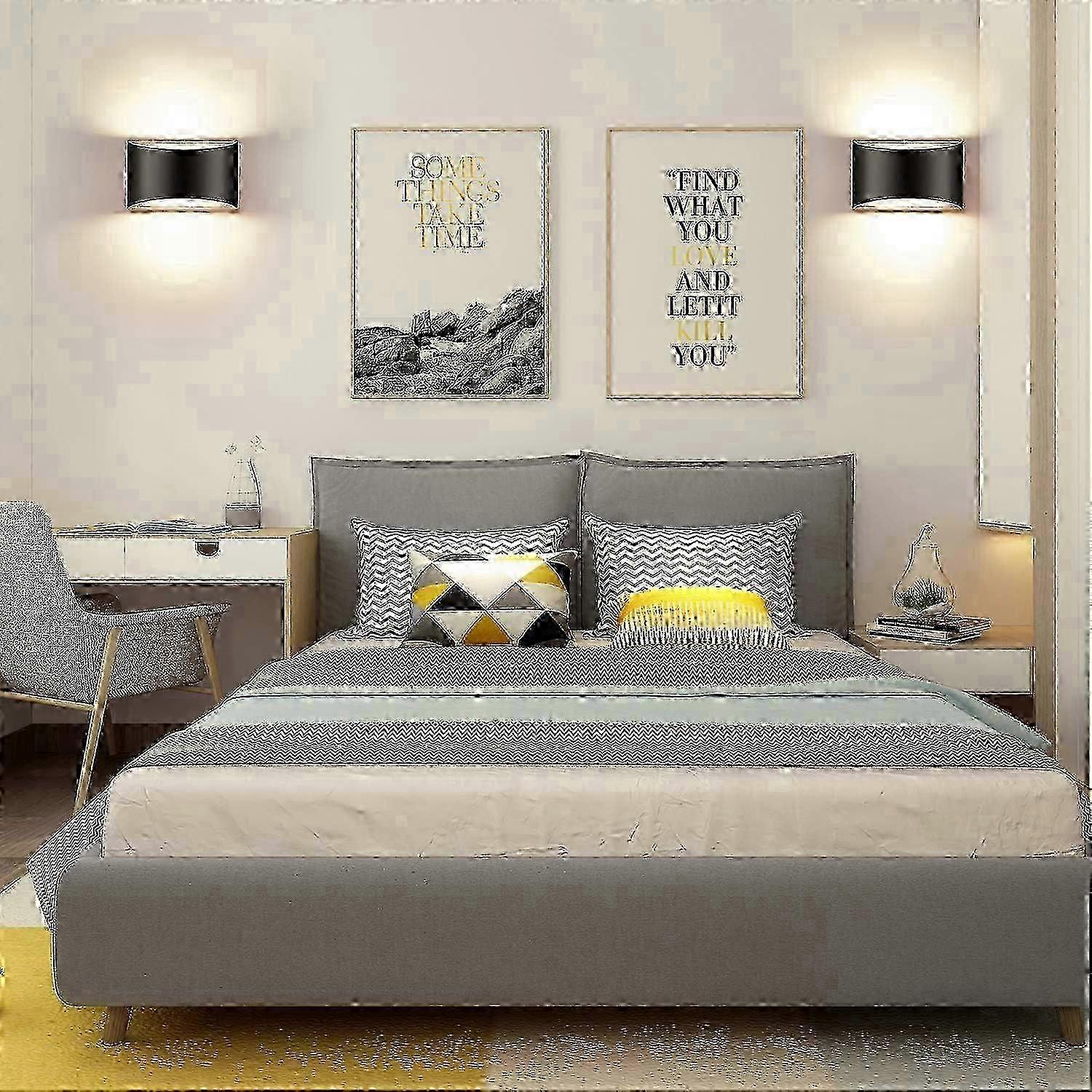 Indoor Dimmable Wall Sconces Sets of 2, Modern Black Led Up Down Wall Lamp, 12W Indoor Hallway Wall Light Fixtures for Living Room, Stair, Bedroom, Wa
