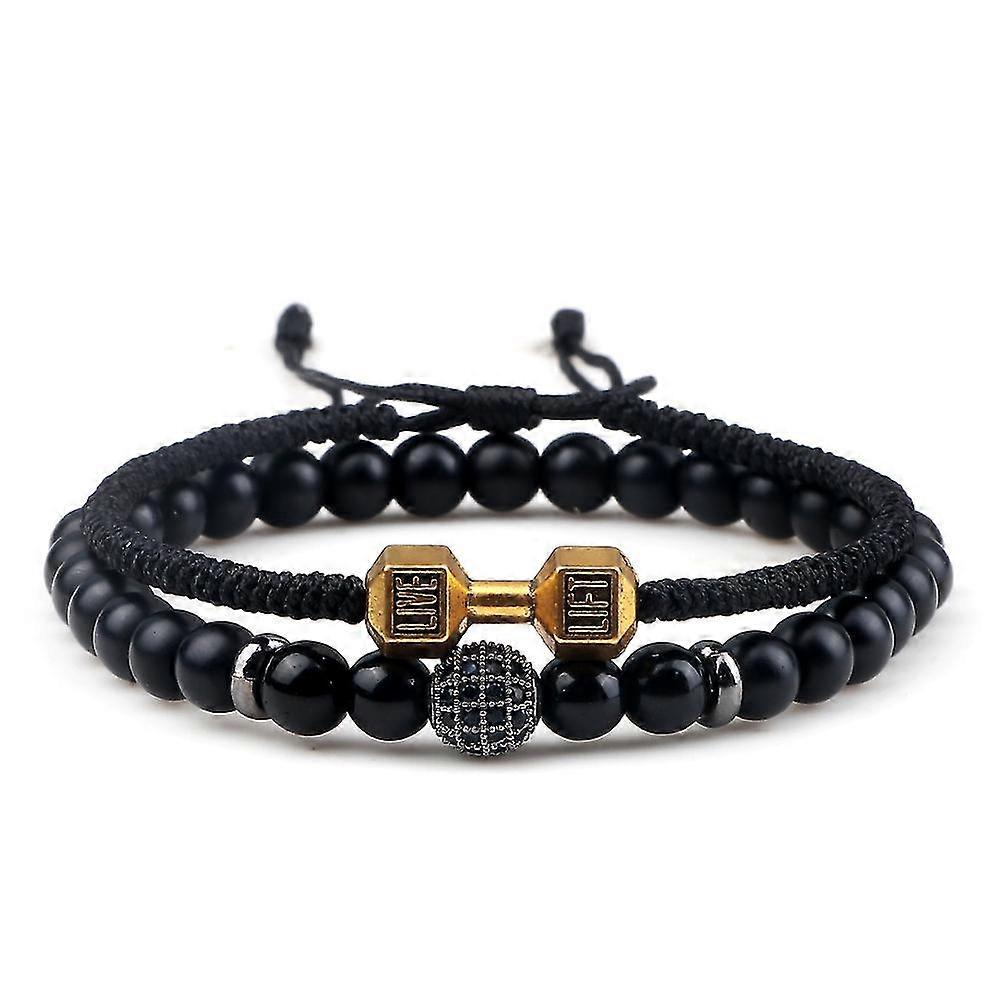 Set Men Beaded Bracelet 6mm Nature Onyx Stone Handmade Braided Dumbbell Bracelets&bangles Women Barbell Yoga Jewelry Gift