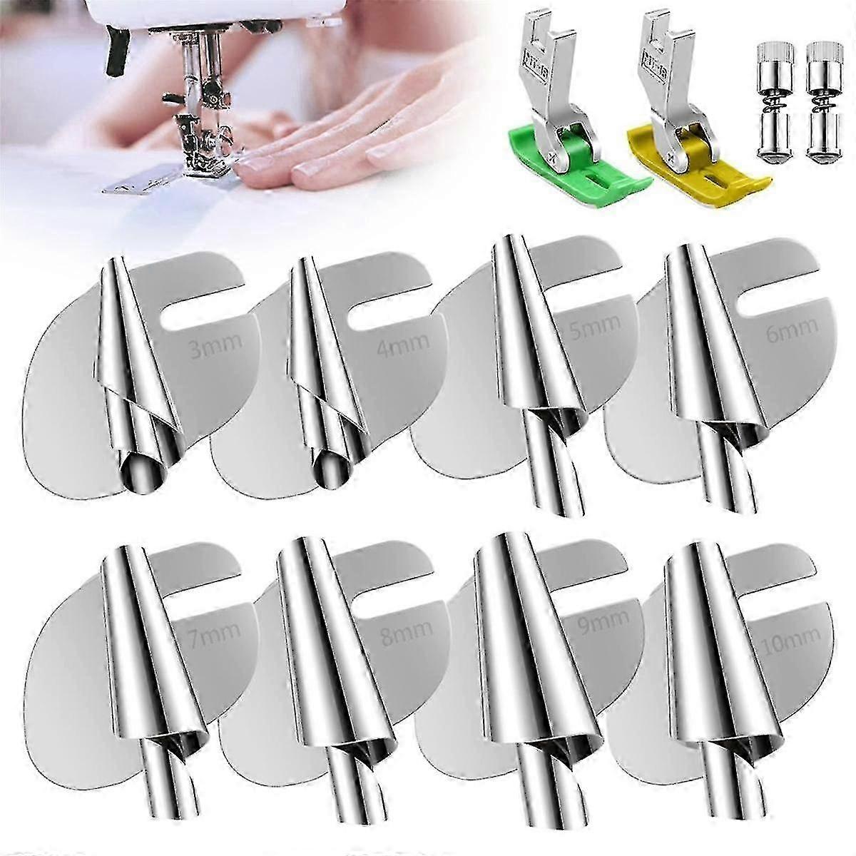 Premium Steel Sewing Rolled Hemmer Foot Set For Home Commercial Usage Including 3/4/5/6/7/8/9/10m