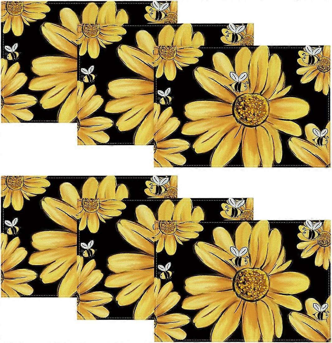 Sunflower Bee Summer Placemats Set of 6, 12x18 Inch Seasonal Spring Table Mats for Party Kitchen Dining Decoration