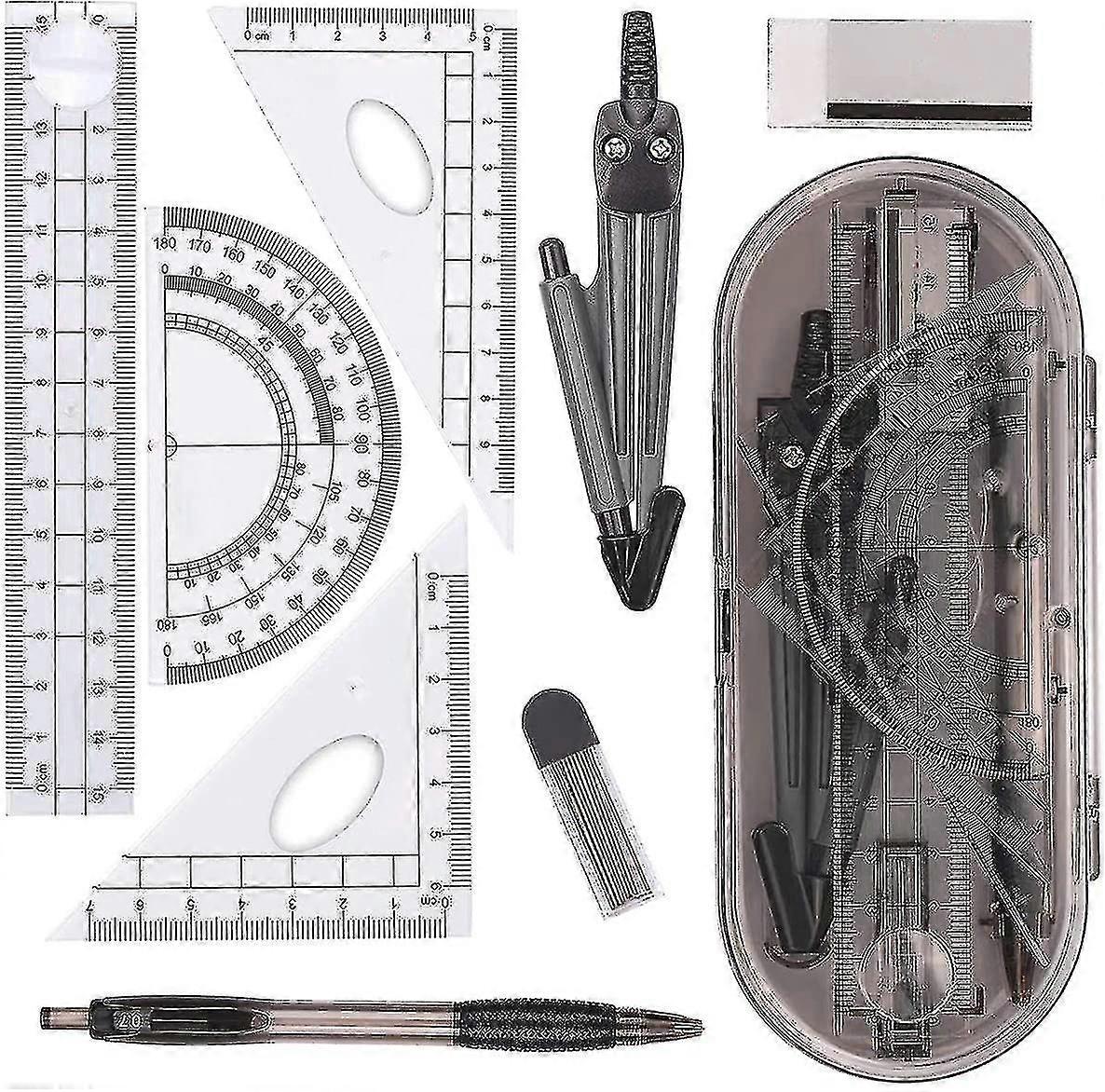 Mathematical Geometry Kit Including Ruler, Protractor, Compass, Pencil Lead