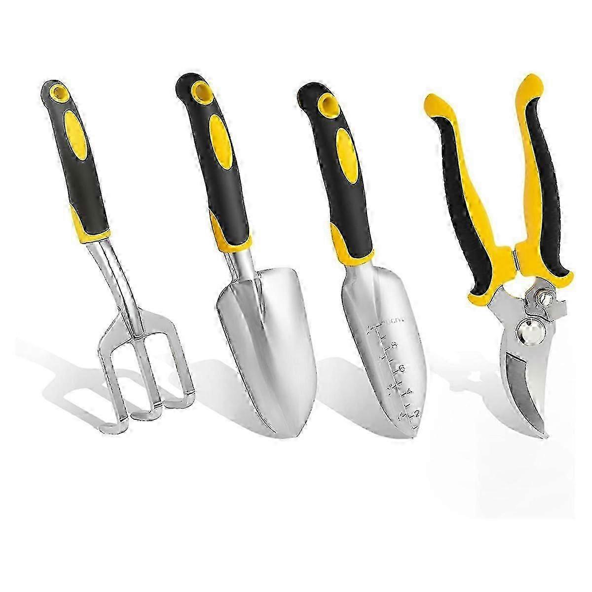 Garden Tool Set: 4-Piece Heavy Duty Aluminum Gardening Tools with Rust-Proof Coating for Durable Use