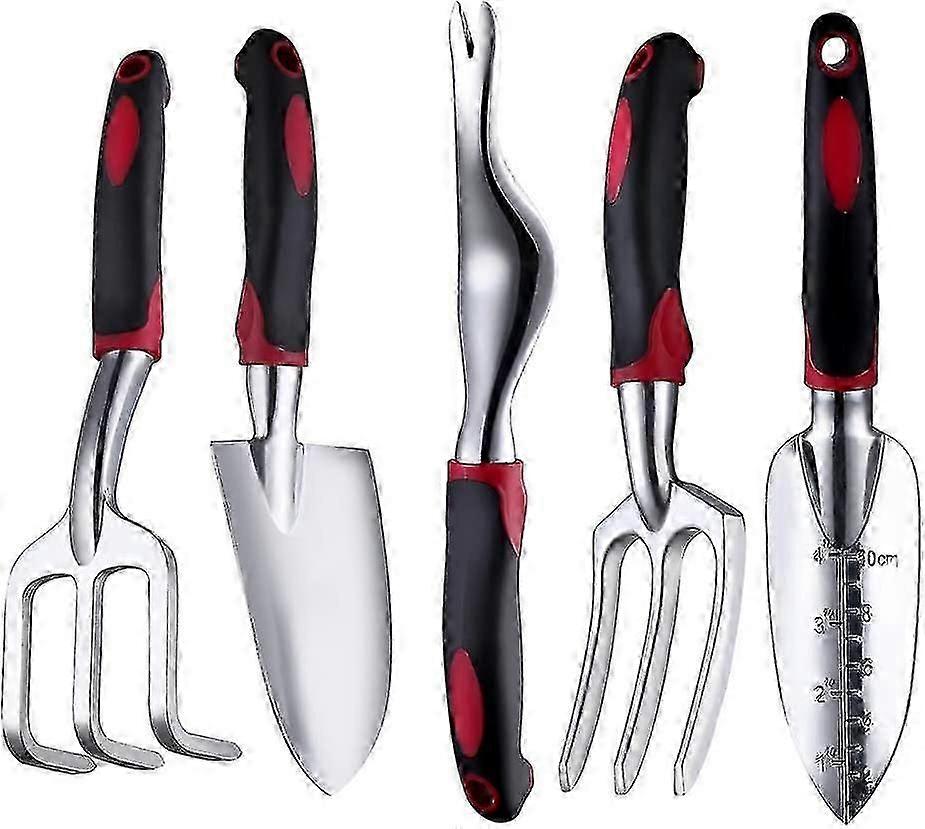 Garden Tool Set, 5 Piece Aluminum Heavy Duty Gardening Gifts Tool Set With Non-slip Rubber Grip For Men And Women (black/red)