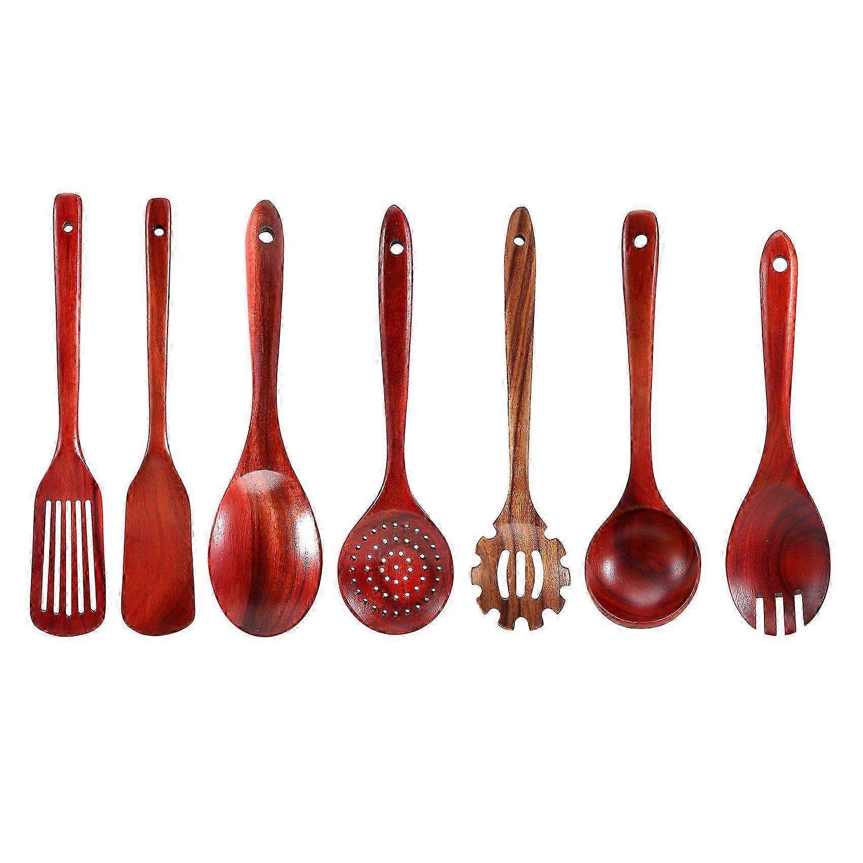 Wooden Kitchen Utensils Set,wooden Spoons For Cooking Natural Teak Wood Kitchen Spatula Set For Including 7 Pack
