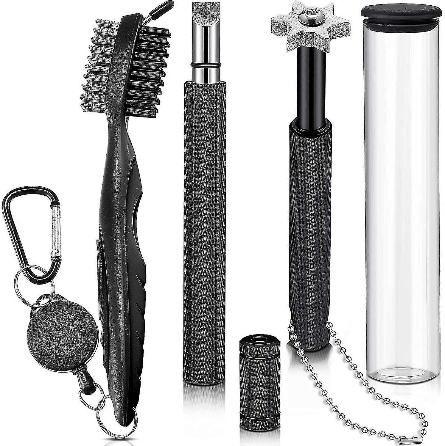 Golf Clean Tool Set -retractable Golf Club Brush And 2 Golf Club Groove Sharpener, For U & V-grooves, Sharp And Clean Kits For All Golf Irons(1s