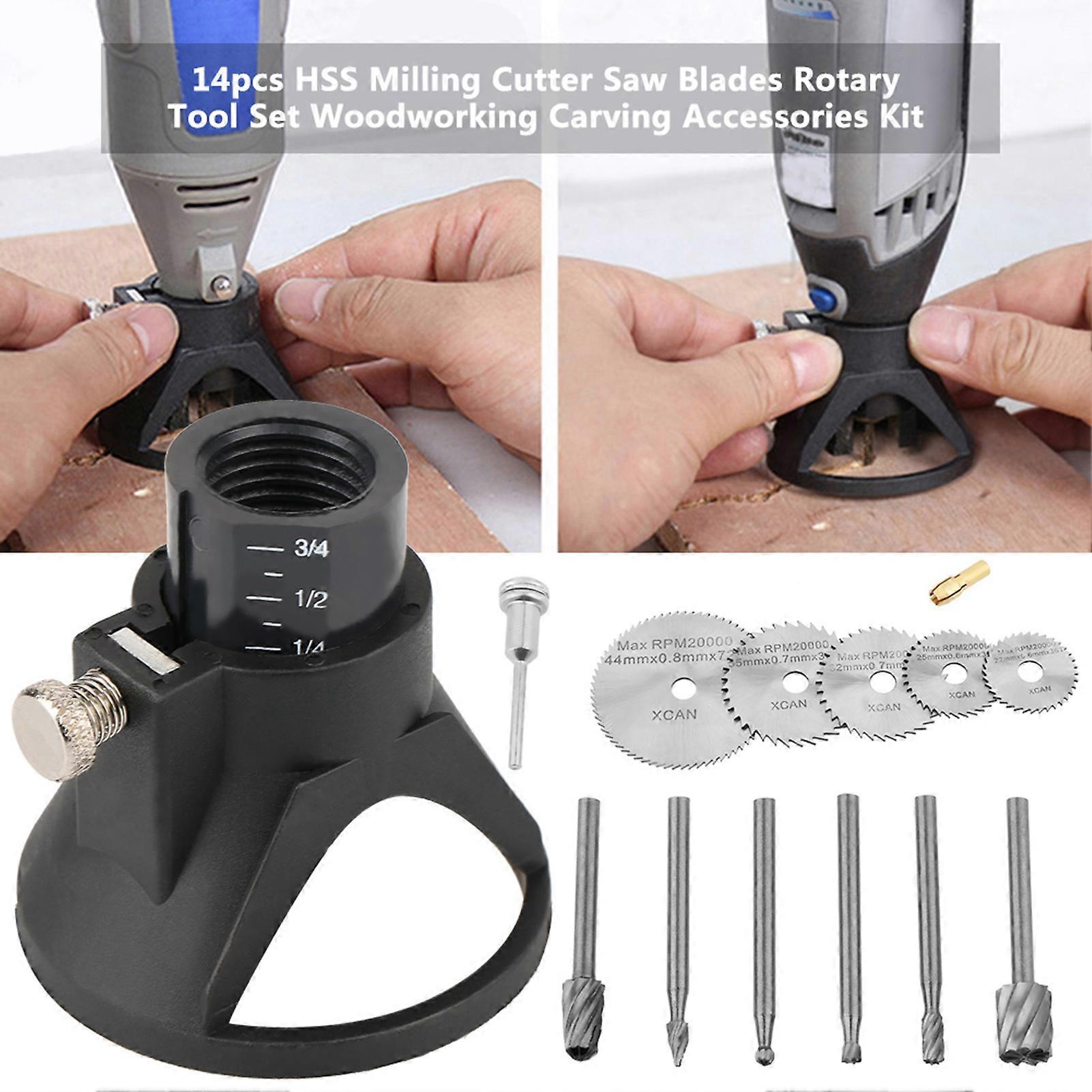 14pcs HSS Milling Cutter Saw Blades Rotary Tool Set Woodworking Carving Accessories Kit