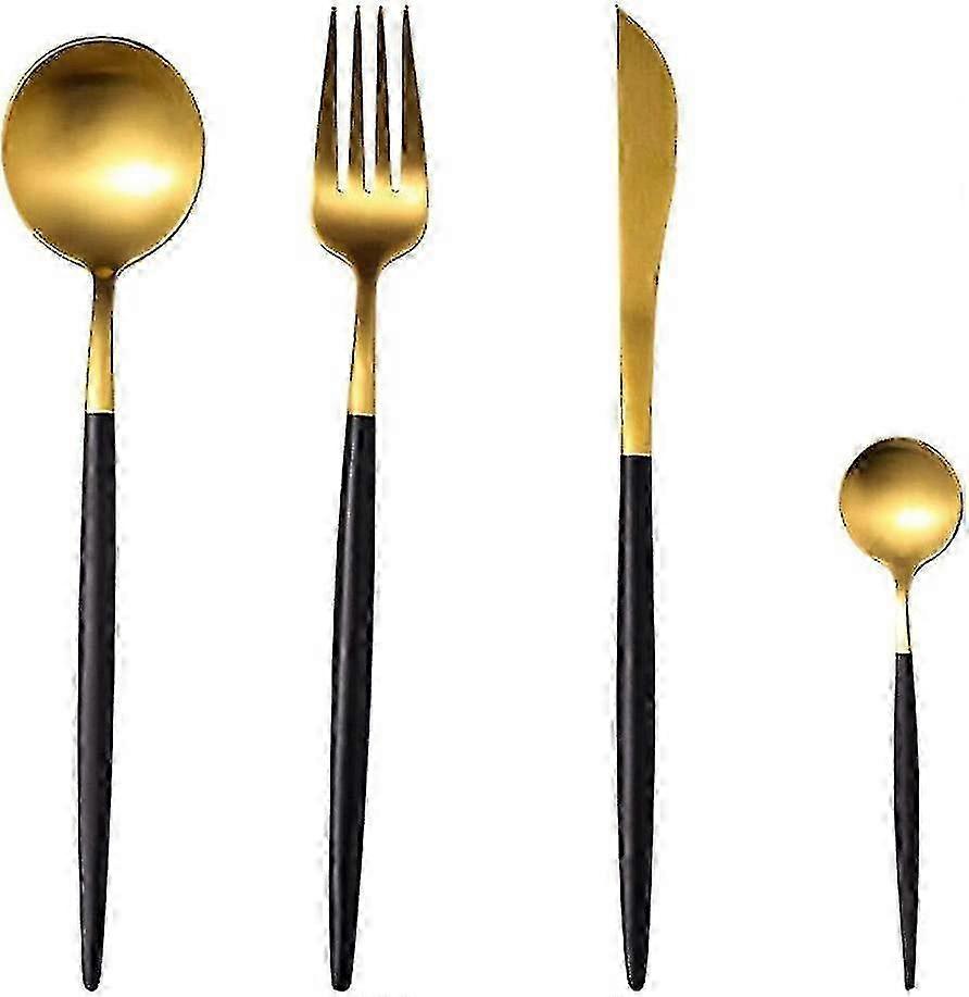 4-piece Cutlery Set, Stainless Steel Cutlery Set Golden Polished Cu...
