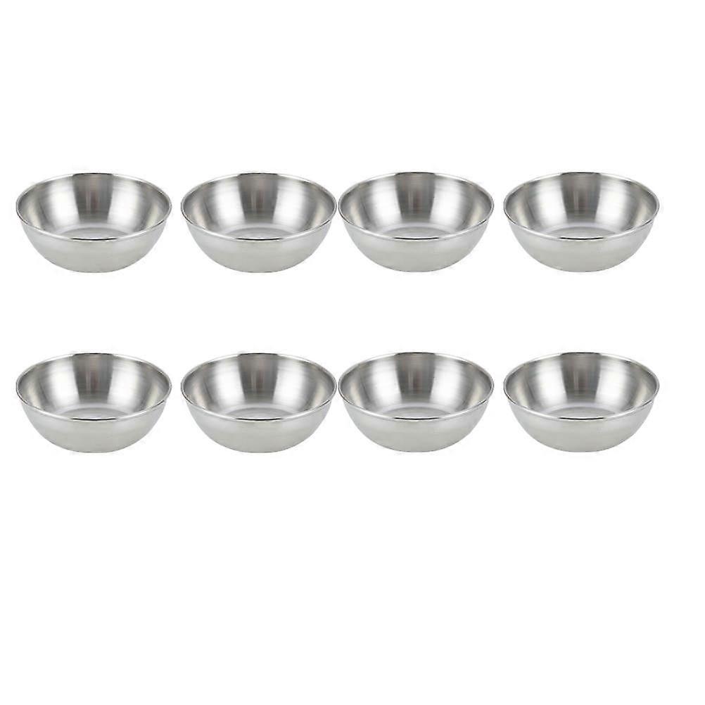 Stainless Steel Round Seasoning Dishes Set 8pcs Flavor Bowls for Sauces, Soy, Mustard Wide Shallow Design for Home, Restaurant & Catering Use