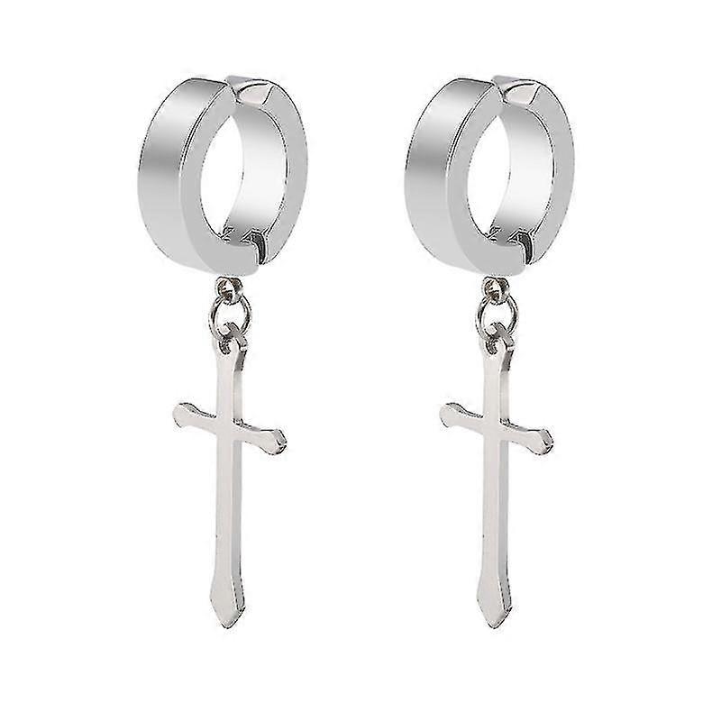 Non-pierced Earrings Set For Men Women Cross Titanium Steel Hoop Dangle Clip On Earring
