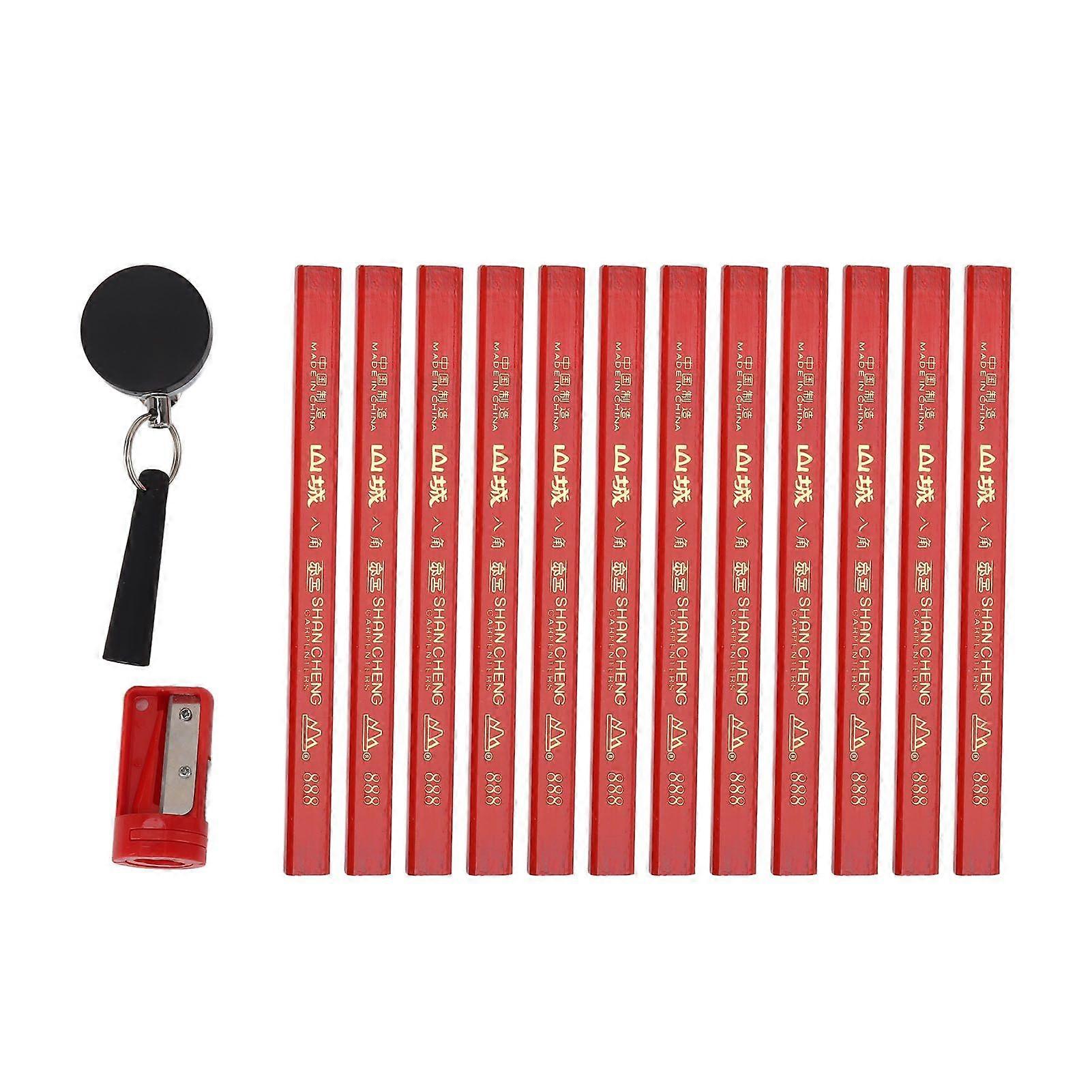 7 Inches Carpenter Pencil Set Octagonal Mark Pencils with Sharpener Retractable Pen Holder for Woodworking Construction