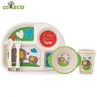 مجموعة أواني الطعام للأطفال من الخيزران - أطباق الأطفال - أطباق طبق الطعام وعاء كوب ملعقة شوكة مجموعة أطباق ، أدوات مائدة كرتونية ، غسالة صحون آمنة للأطفال وقت صحي لتناول الطعام ،