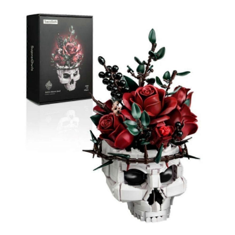 Gothic Skull Rose Bouquet Building Set, Compatible with Lego Flowers for Adult - Halloween Gothic Horror Skeleton Plant Pot Home Decor