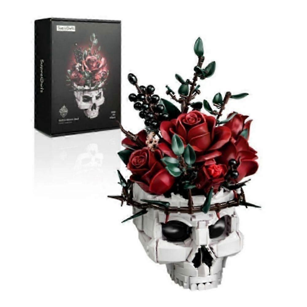 Gothic Skull Rose Bouquet Building Set for Adults, Halloween Decor with Skeleton Plant Pot, Lego-Compatible