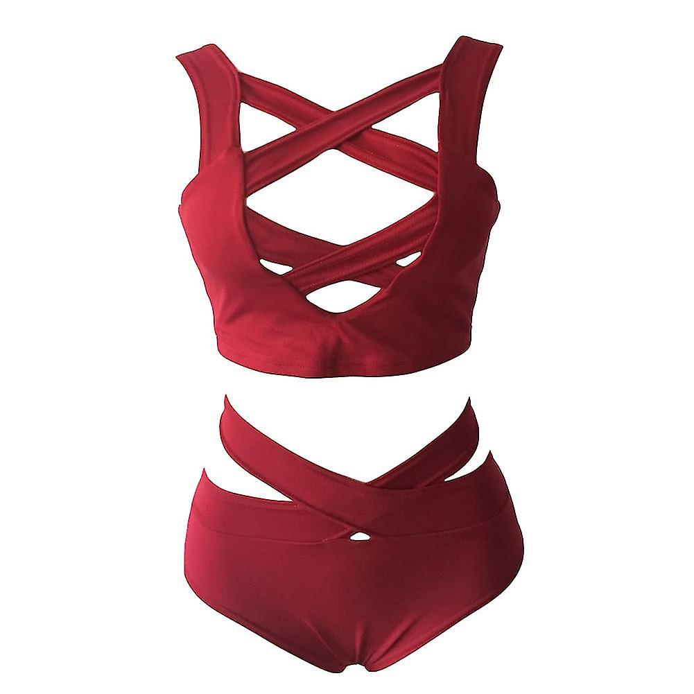 Women Bikini Set Swimsuit Cut Out Deep V-neck High Waist Bandage Two Piece Swimwear