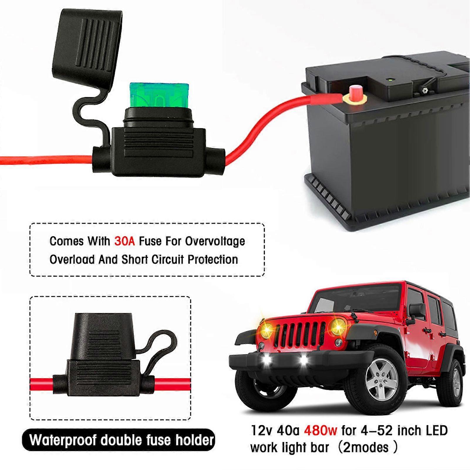 LED Light Bar Wiring Harness Kit, 480W 2 Leads 18 AWG LED Wiring Harness with 12V 40A Relay and Waterproof Control Switch for Switching Between Differ