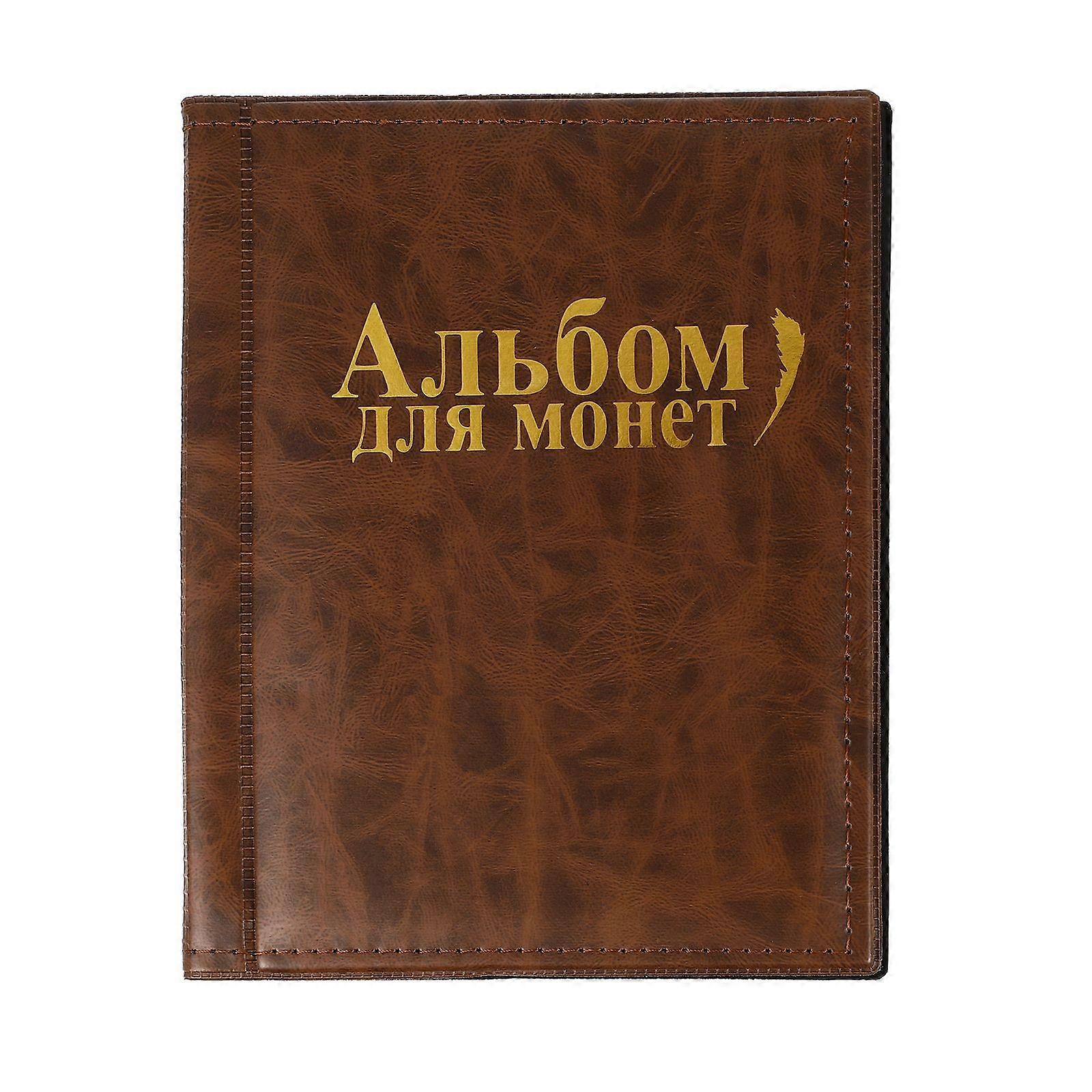 Coin Holder Collection Coin Storage Album Book Money Penny Photograph Pocket for Collectors (Brown)