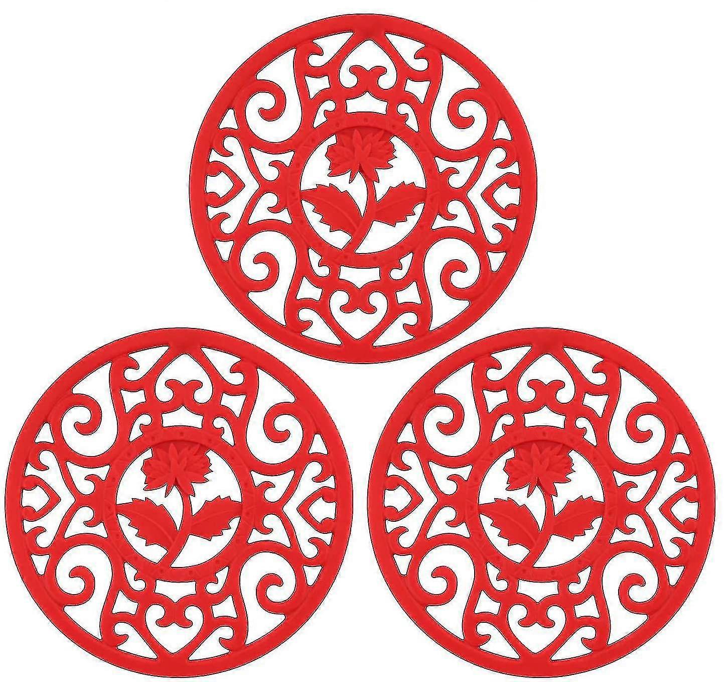 Silicone Trivet Mat-set Of Multi-use Intricately Carved Trivet Set(3 pcs, red)