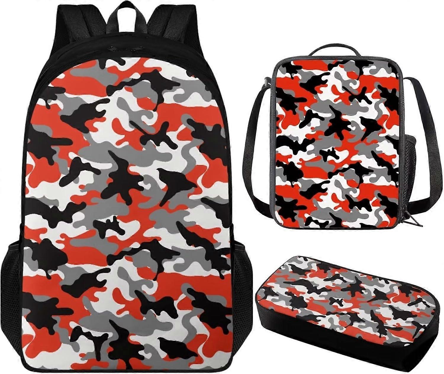 Camouflage 3Pcs Backpack Set School Bags for Kids 8-10 Boys Cool School Bag Student Toddler Teens 2nd Grade 17 inch Lightweight Bookbag for Primary El