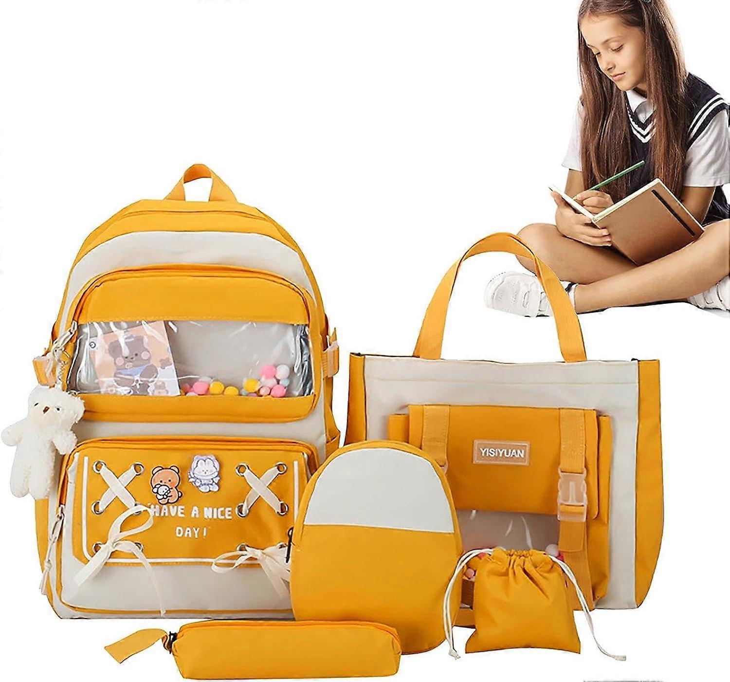 Cute Bags Set,Included Pins And Plush Pendants Aesthetic Waterproof School Bag Set 5 Piece | Large Capacity, Waterproof, Cute For Short Trips, Work, S