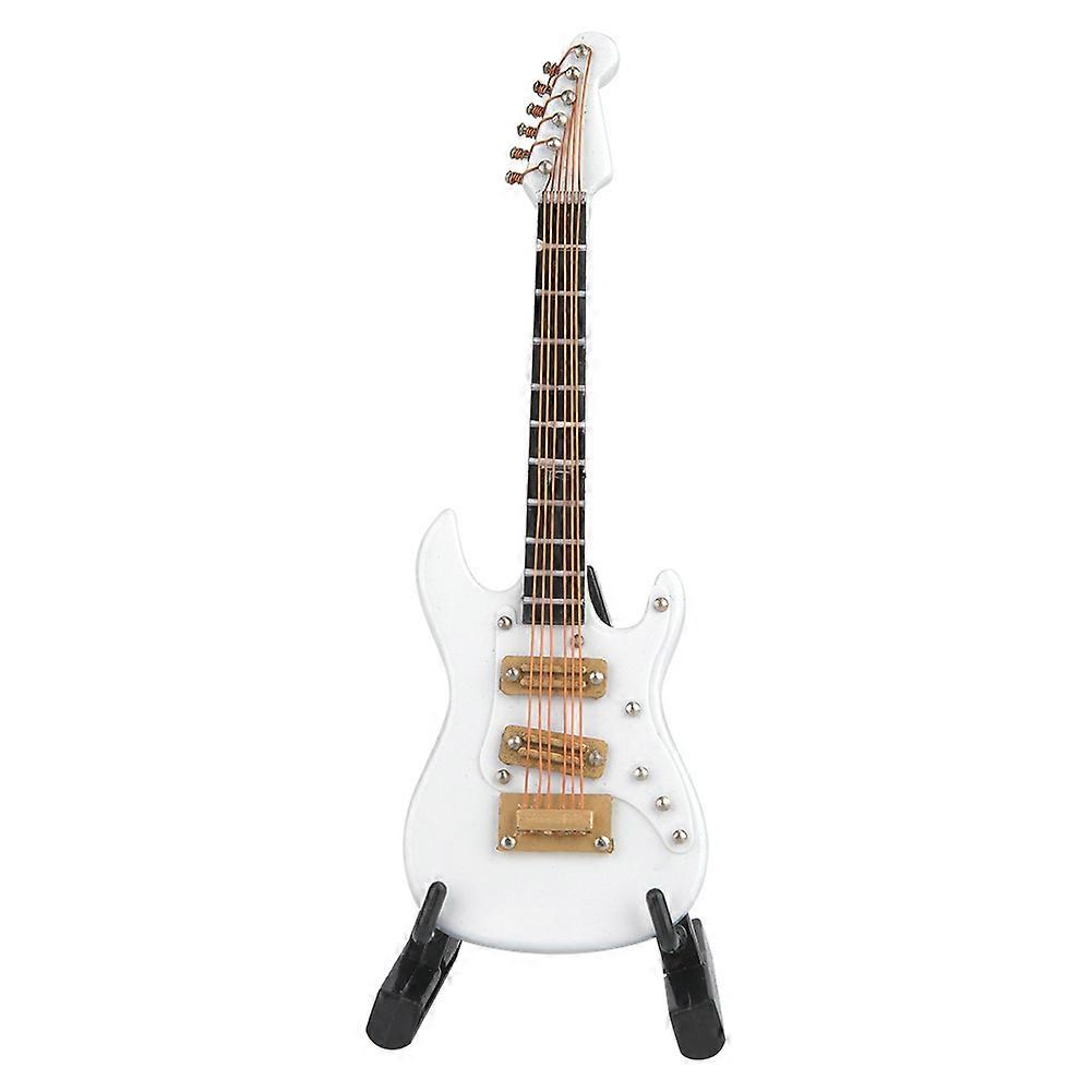 Delicate 10 cm Mini Wooden Electric Guitar Model Ornaments Collection with Stand(White)