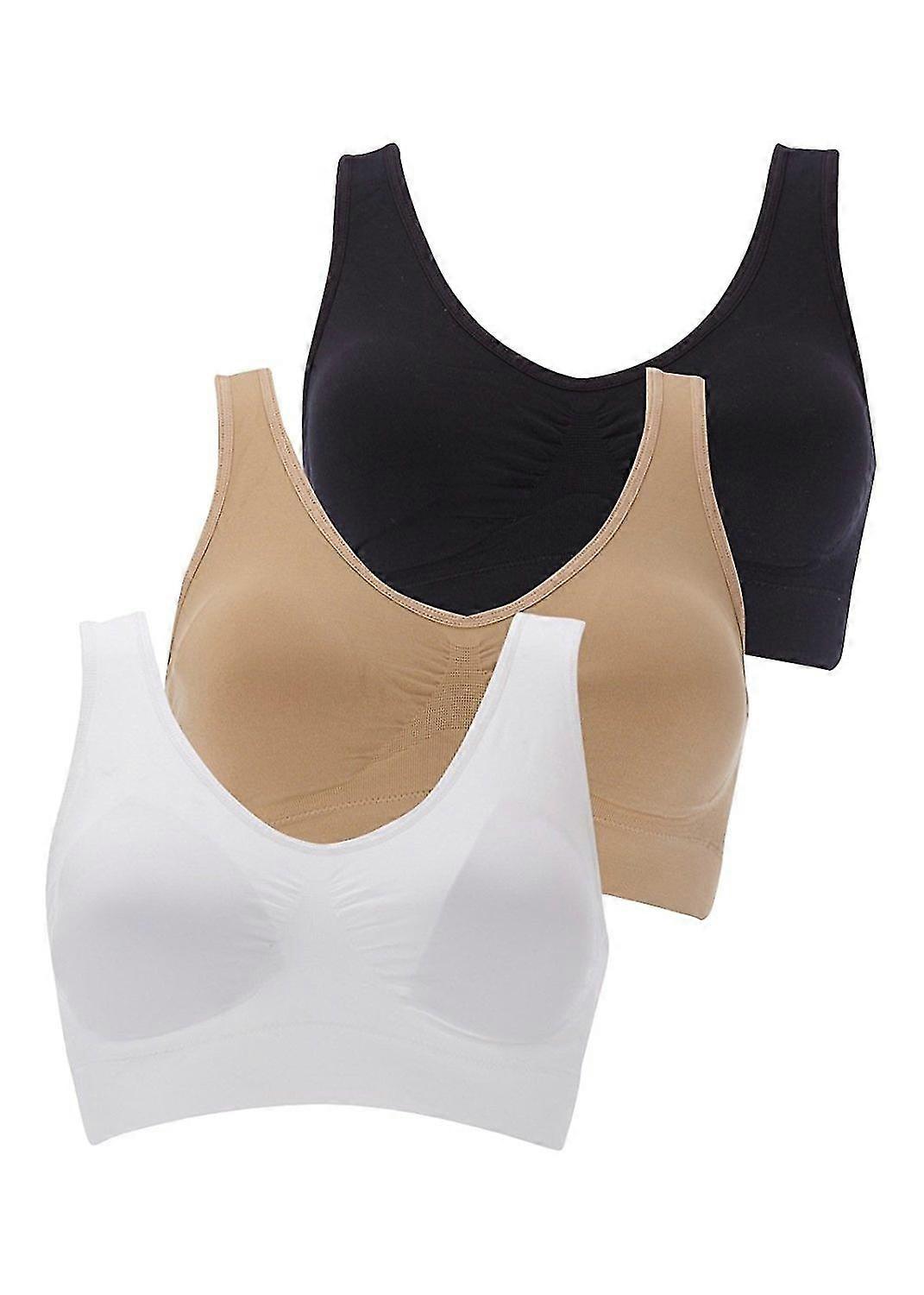 BOOLAVARD 3-Piece Set Comfort Sport Bra: White, Black and Skin Colour.