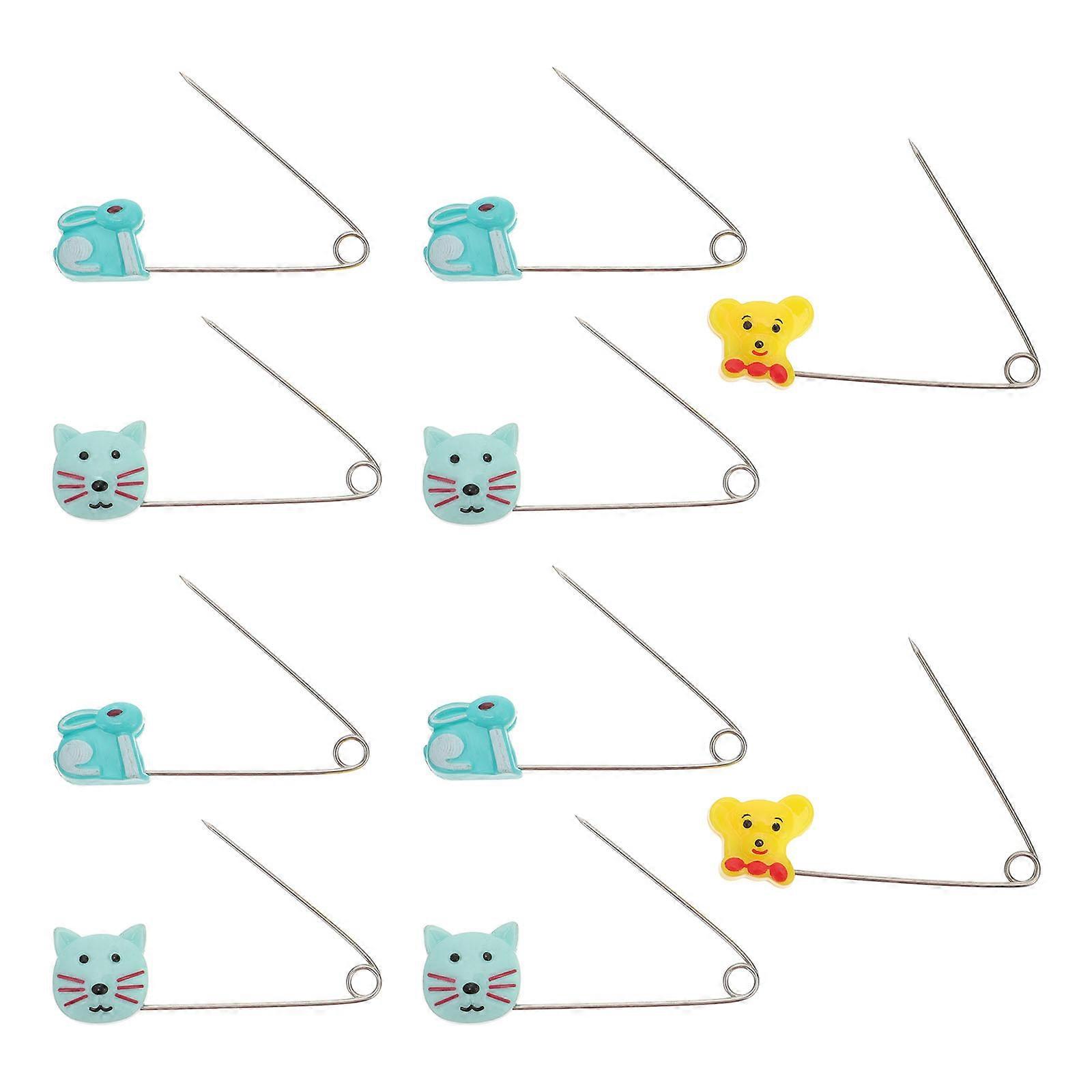 Cartoon Safety Pins Set Durable U Shaped Diaper Fasteners & Craft Brooch Clips for Newborns Assorted Animal Designs