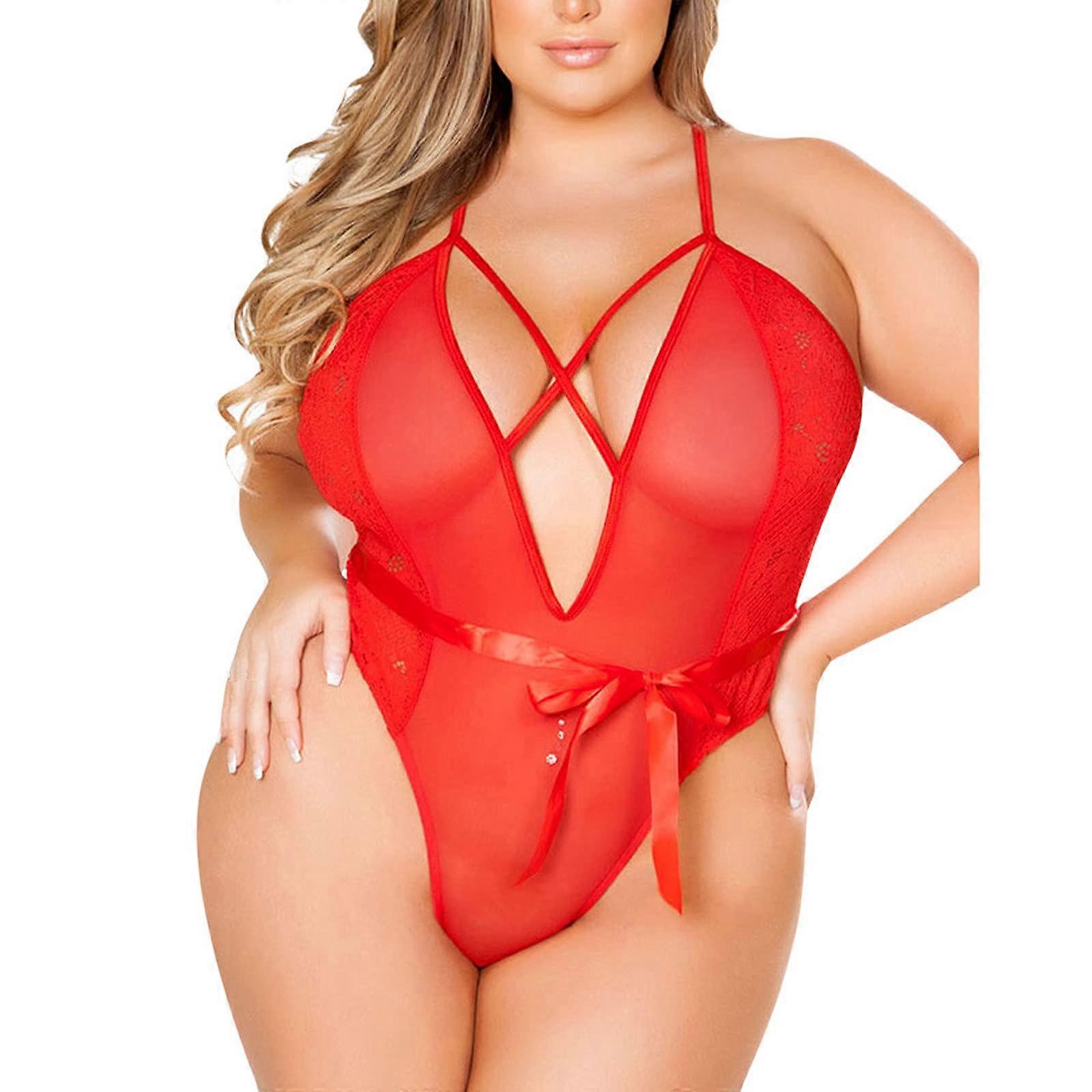 Dessous Set Red Lace Corset Lingerie With Straps For Women Plus Size Nightwear - Corset Underwear, Red, Size M