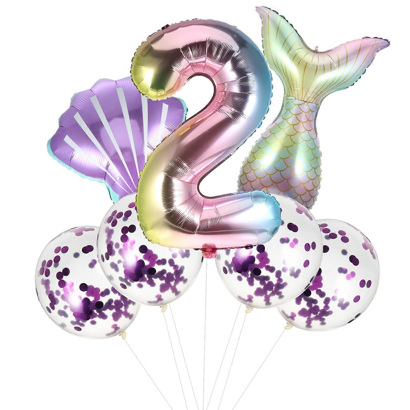 Party Decoration Set With 7 Pcs Aluminum Foil Balloons In Purple For Kids Mermaid Theme Celebrations