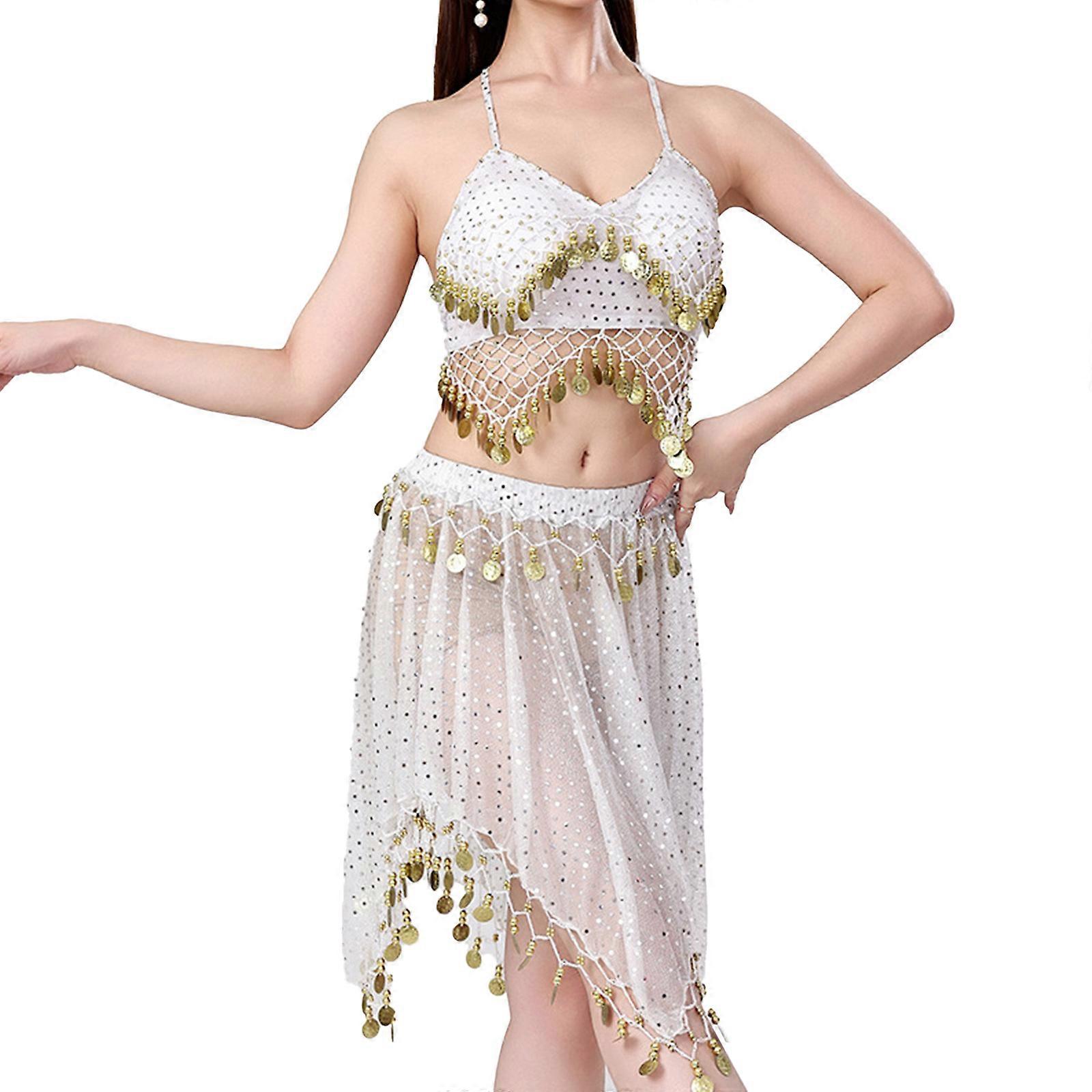 Belly Dance Costume Set Belly Dance Bra Top Belly Dancing Skirt Halloween Belly Dance Outfits for Stage Performances White Universal code