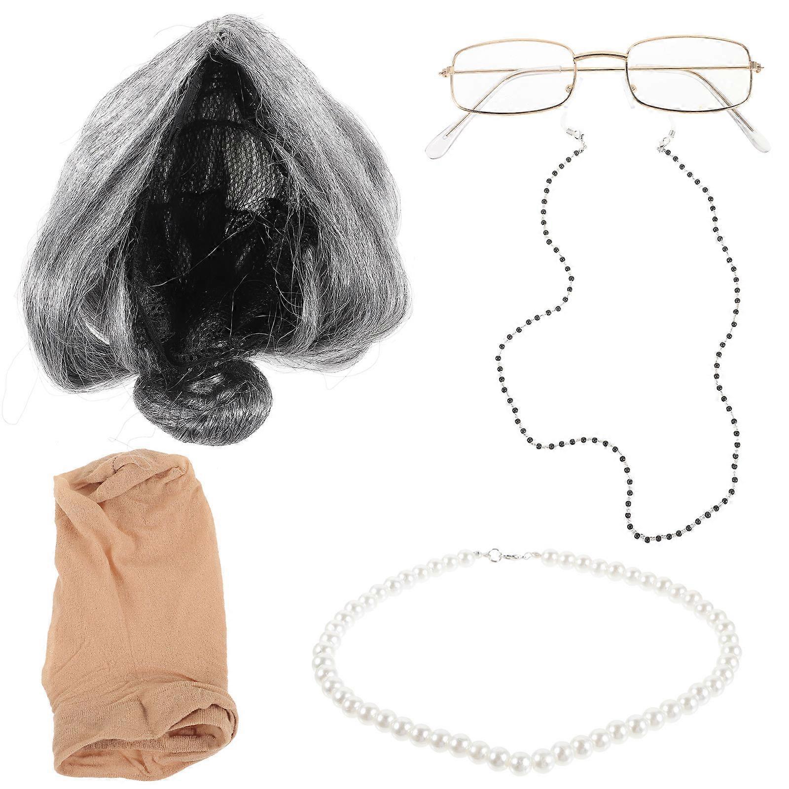Old Lady Costume Kit Old Lady Cosplay Set Theme Parties Gray Yarn 1Set