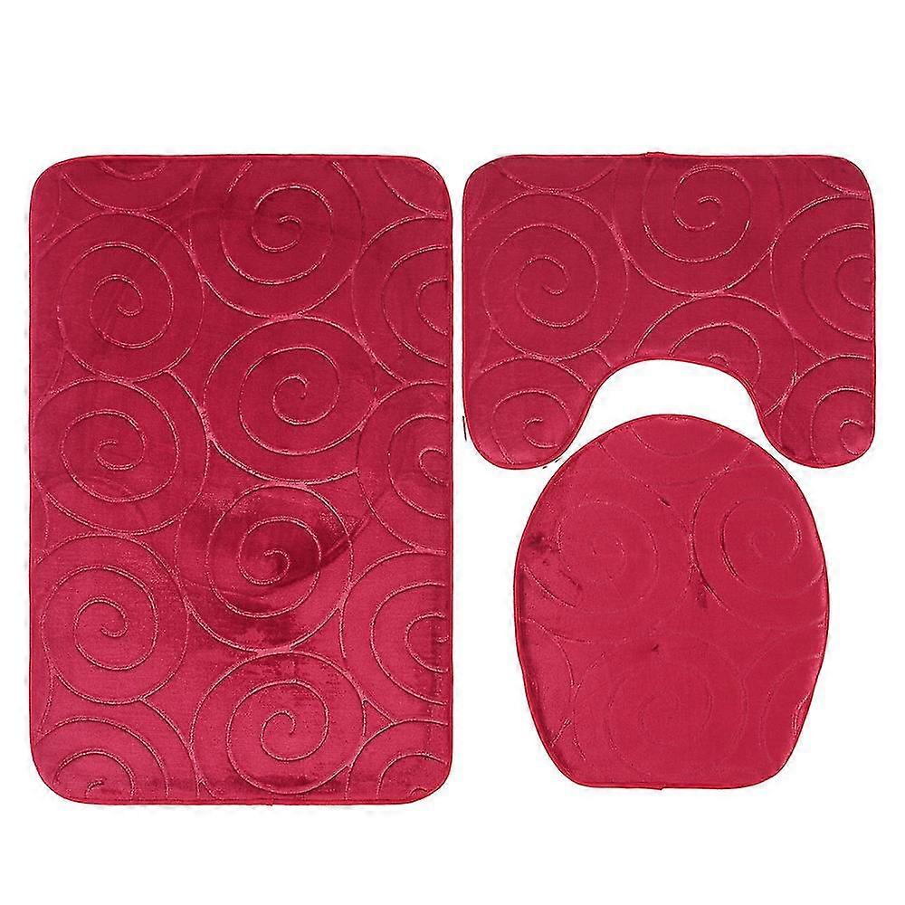 Bathroom Rug Set, 3 Pieces Bath Rug And Toilet Mat, Microfiber Bathroom Rugs Shower Mat, Super Absorbent Bath Mats For Tub, Shower, Bathroomred, Spira
