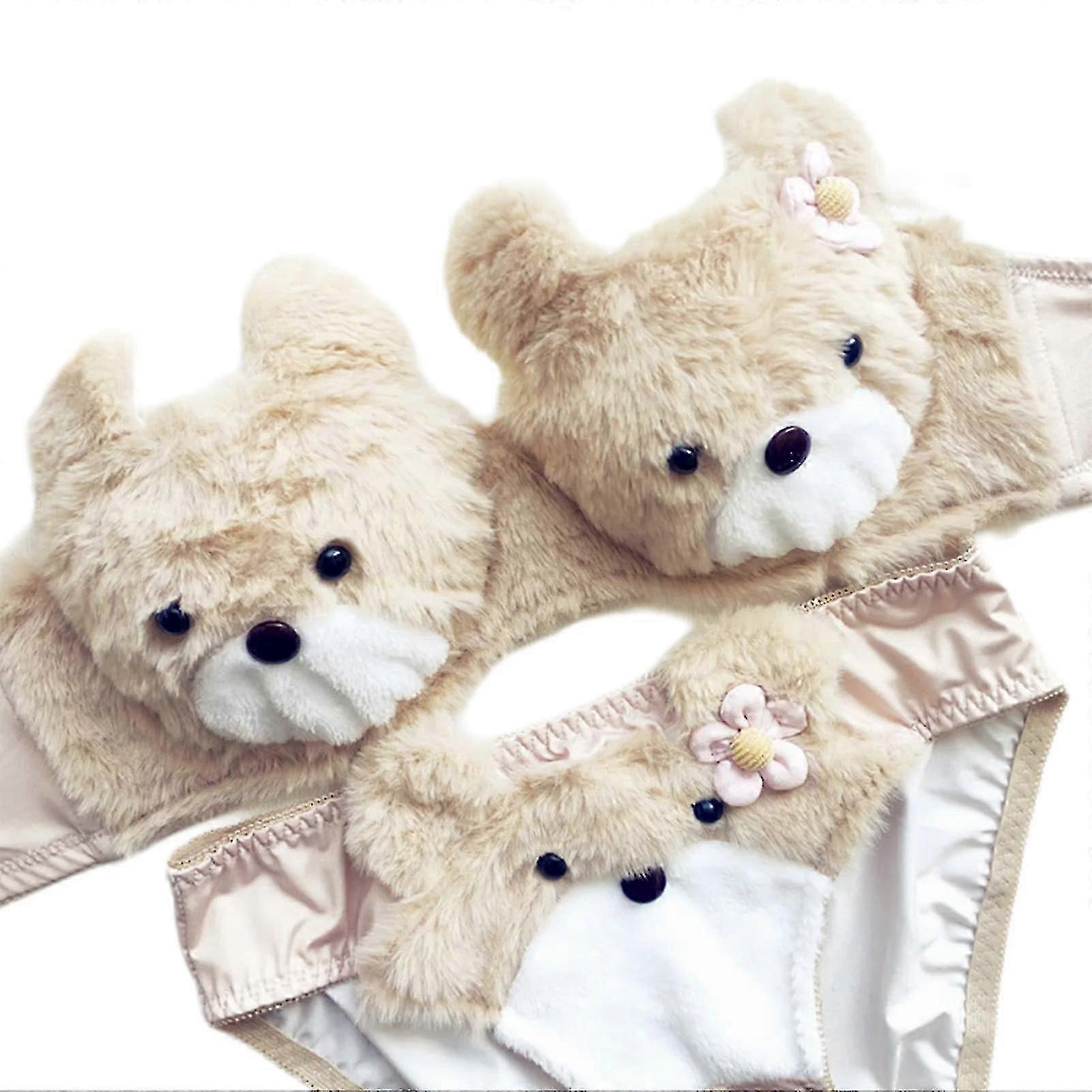 Women Lovely Plush Bra Panty Set Funny Bear Bra Panties Set Cartoon Plush Underwear Soft Student Girls Lingerie Set brown XL