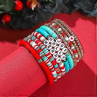 Christmas Bracelet Set, Holiday gift, Snowman bracelet, Christmas bracelet, pottery beaded bracelet