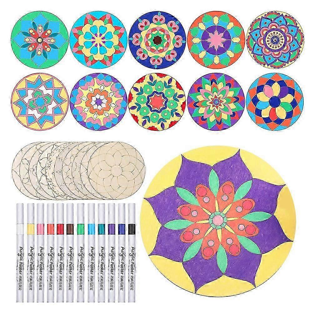 22-Piece Wooden Mandala Painting Set - Complete Art Kit for Creative Projects & Relaxation Activities