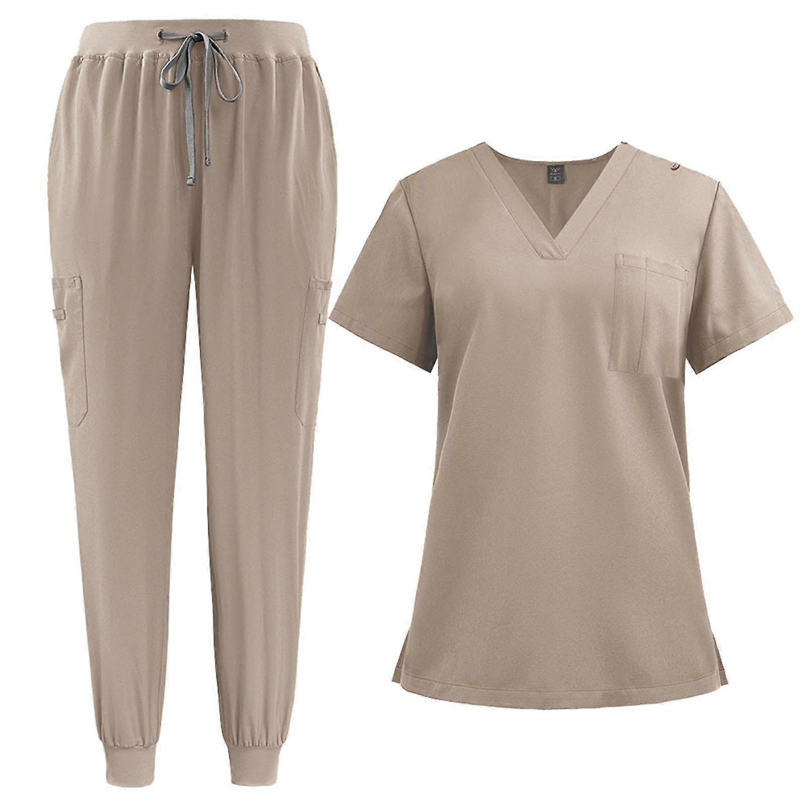 Nursing Scrub Set V Neck Nurse Workwear for Jogging Cosmetology Beauty Salon S Dark Red