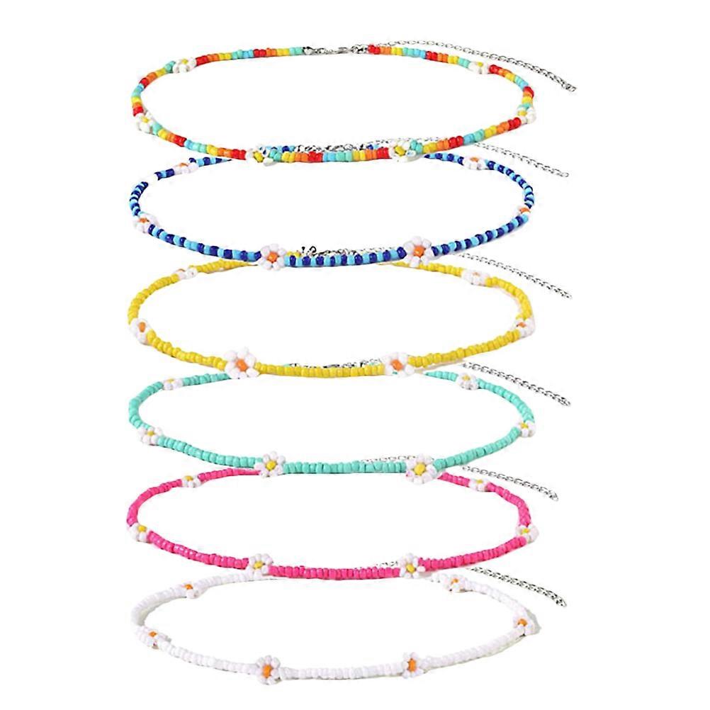 Bohemian Flower Beaded Necklace Set Lightweight Colorful Choker Jewelry for Women and Teens, Stylish Beach Accessory