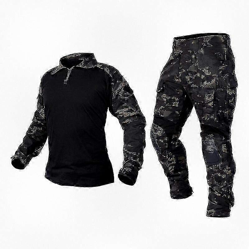 Men's Tactical Uniform Shirt and Combat Pants Set with Knee Pads for Military Style Army Clothing Suitable for Airsoft Paintball Camouflage