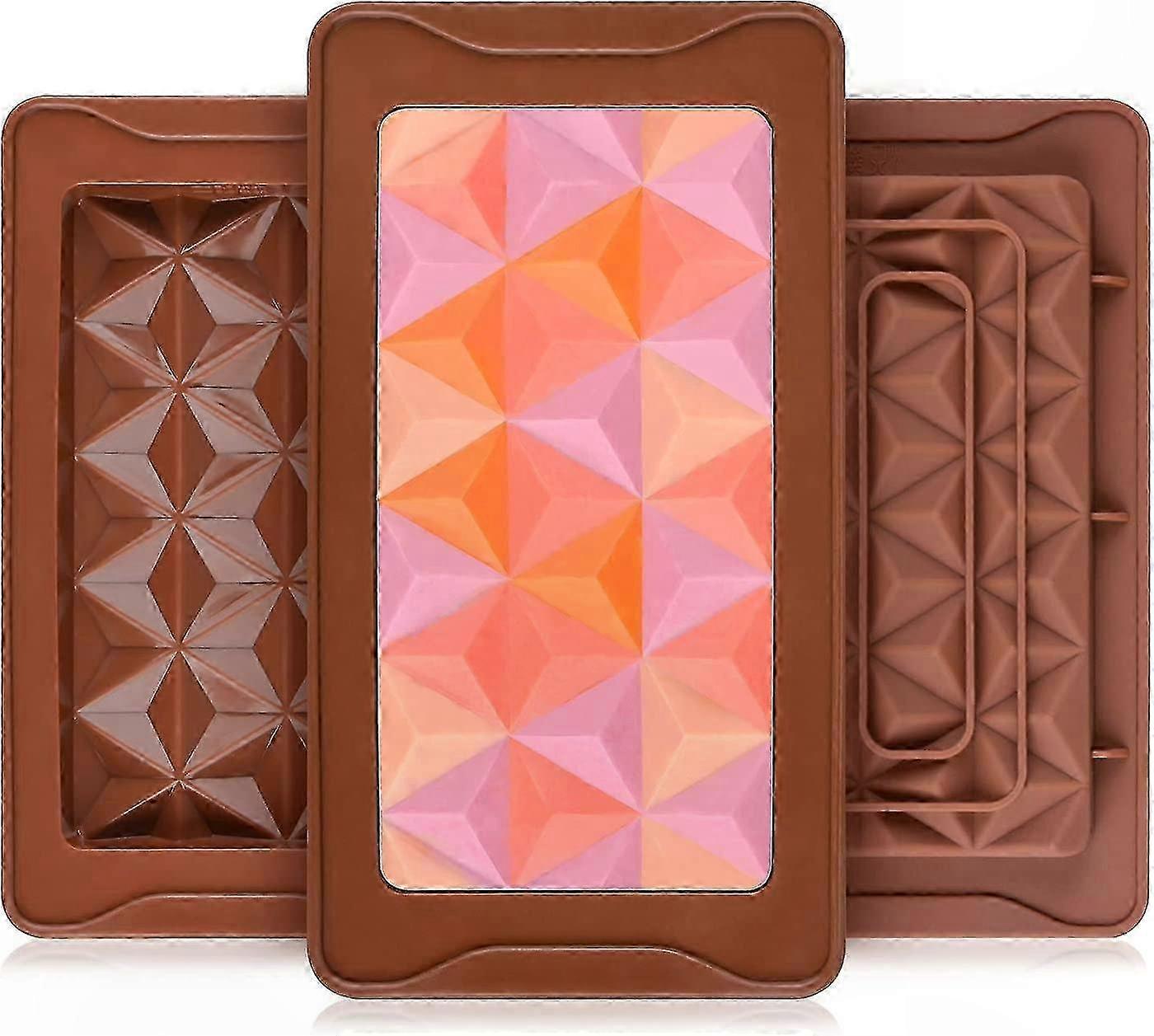 3-Piece Silicone Chocolate Mold Set for Deep Candy Bars, Wax Melts, and Pyramid Shapes