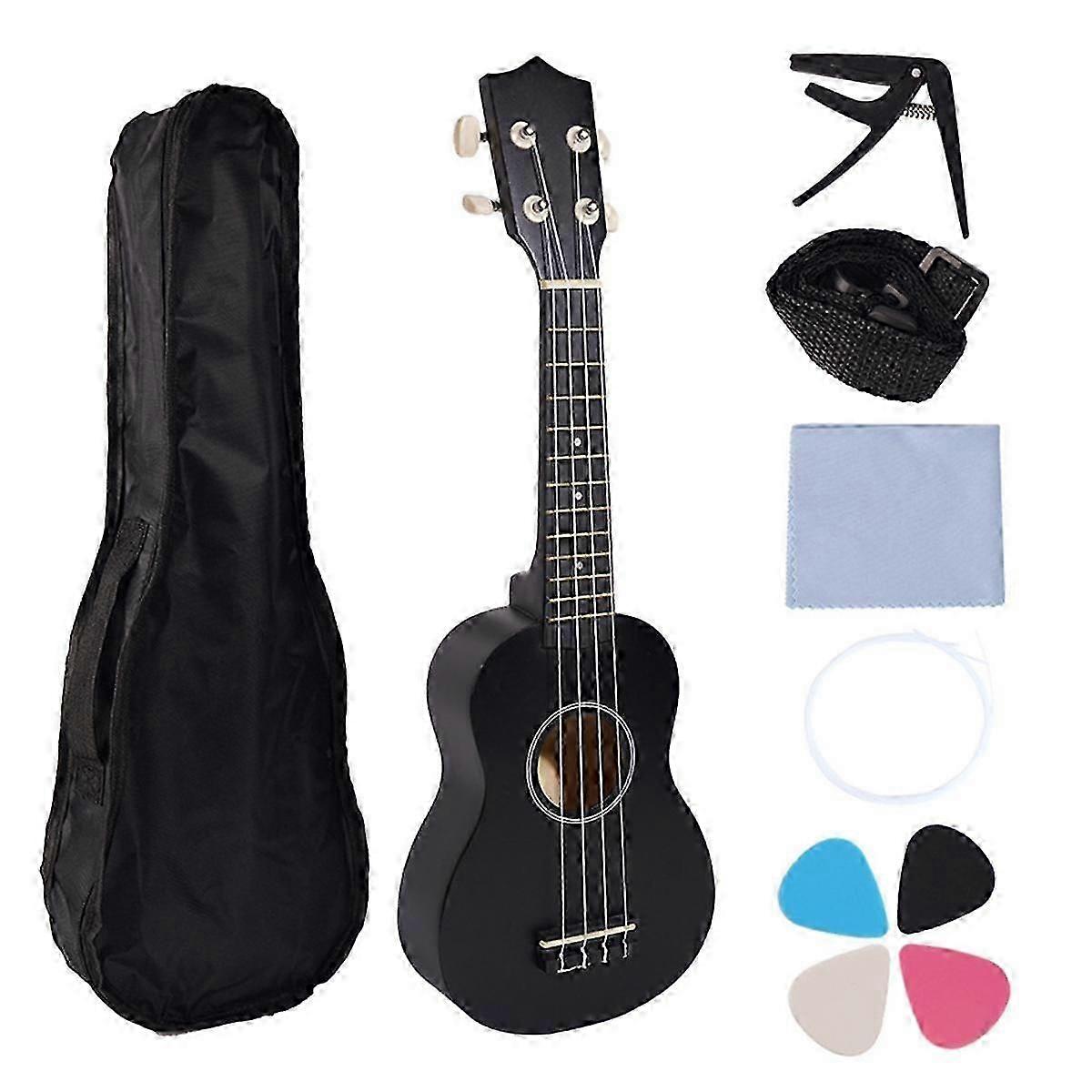21 Inch Ukulele Set For Beginners 4-string Small Guitar Basswood Ukulele With Carry Bag Clip And 4 Picks-black
