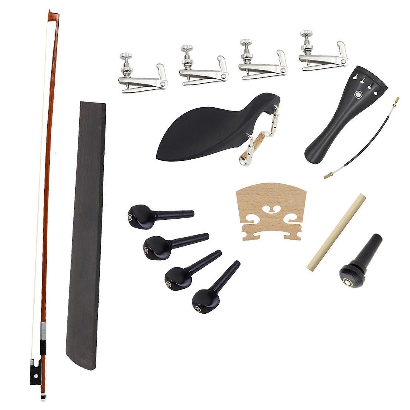 Complete Violin Accessories Set With Ebony Bridge Chinrest Professional Tuning Pegs Wood Violin Part Set for Violin Silver