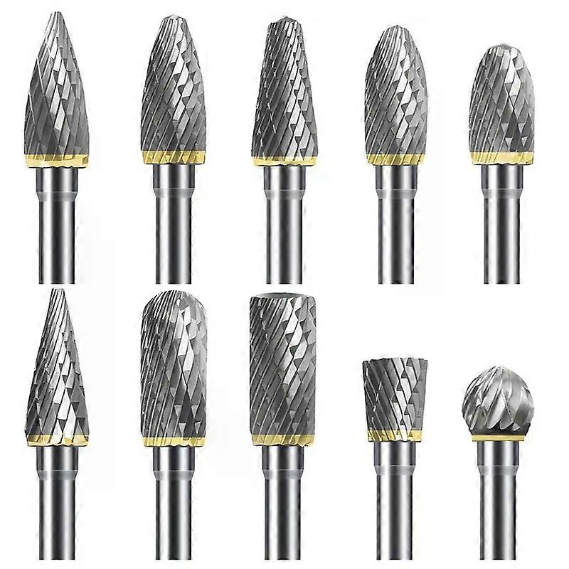 Carbide Burr Set 10PCS 1/8 Shank Double Cut Tungsten Carbide Rotary Burrs Set with Dremel Bits for Metal Wood Carving Polishing