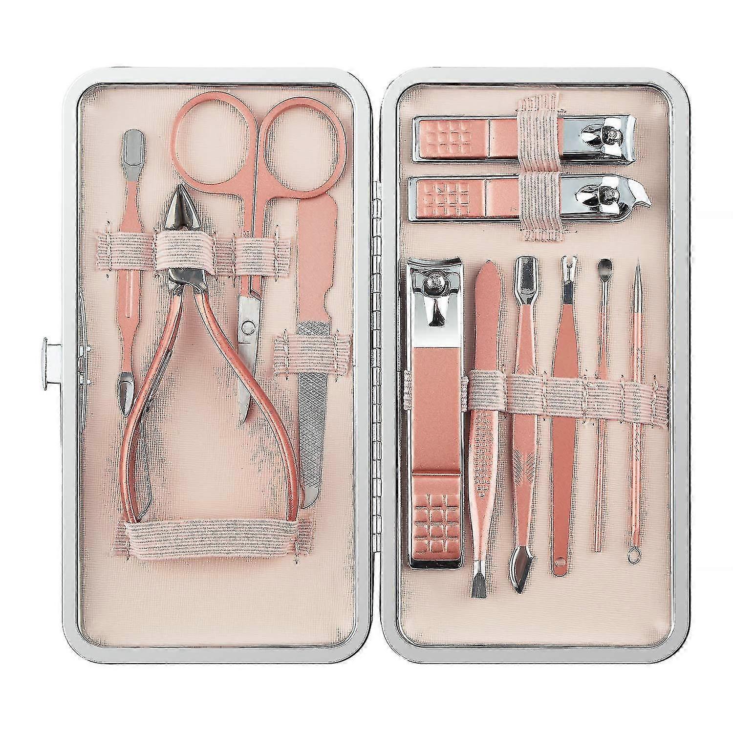 Manicure Set, 12 In 1 Stainless Steel Professional Pedicure Kit Nail Scissors Grooming Kit With Pink