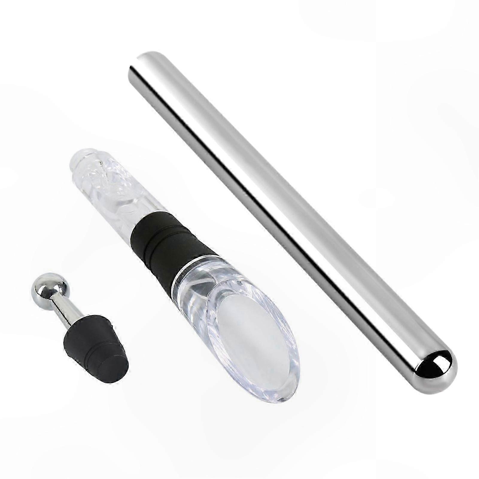 3-Piece Reusable Wine Chiller Set - Stainless Steel Cooling Sticks with Aerator and Pourer for Home Use Portable Tool for Wine Lovers