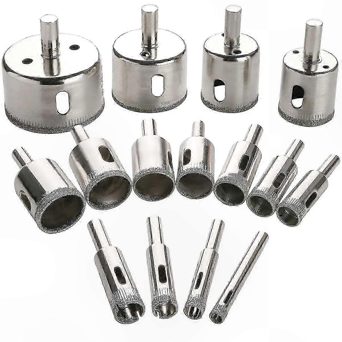 Tile Drill Bit Set, 15-Piece Diamond-Coated Hole Saw Kit, 6mm-50mm Range