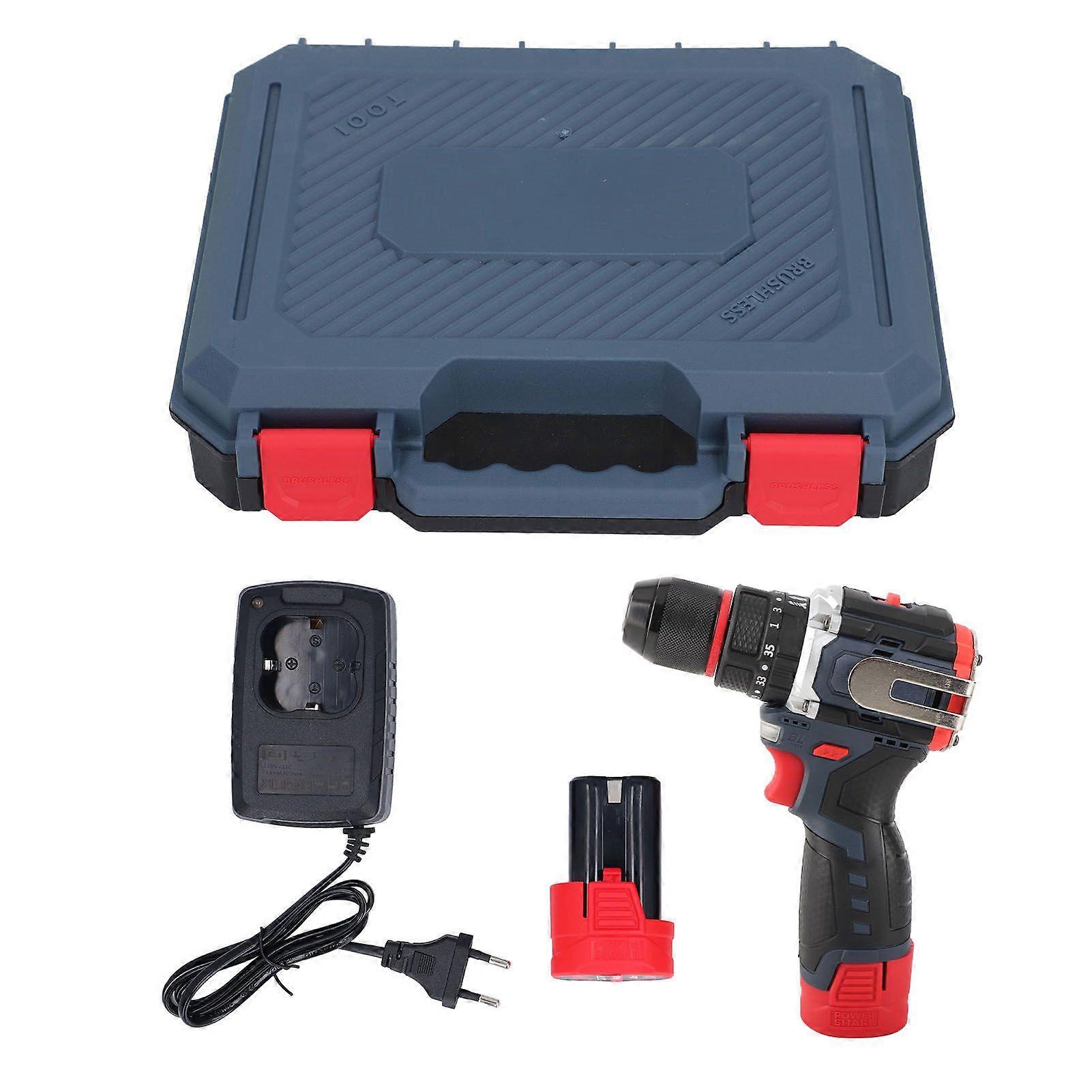 18V Electric Power Drill Set Pure Copper Brushless Motor Cordless Drill Driver for Wood Metal Ceramic Drilling 100240V EU Plug
